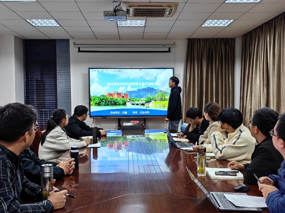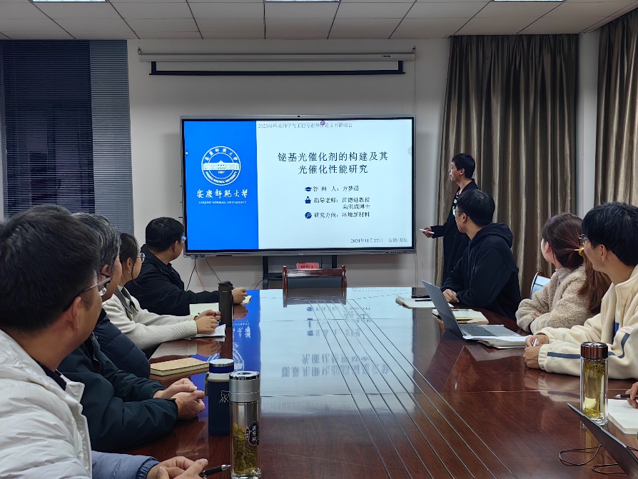 各位研究生通过ppt讲解的方式,围绕自己的课题开展研究背景、研究内容、技术路线、研究进度和预期成果等进行了详细汇报。同学们的研究选题紧紧围绕环境领域,涵盖了光电催化、芬顿氧化、固废资源化利用等研究方向,展现了公司研究生们的学术水平和创新能力。