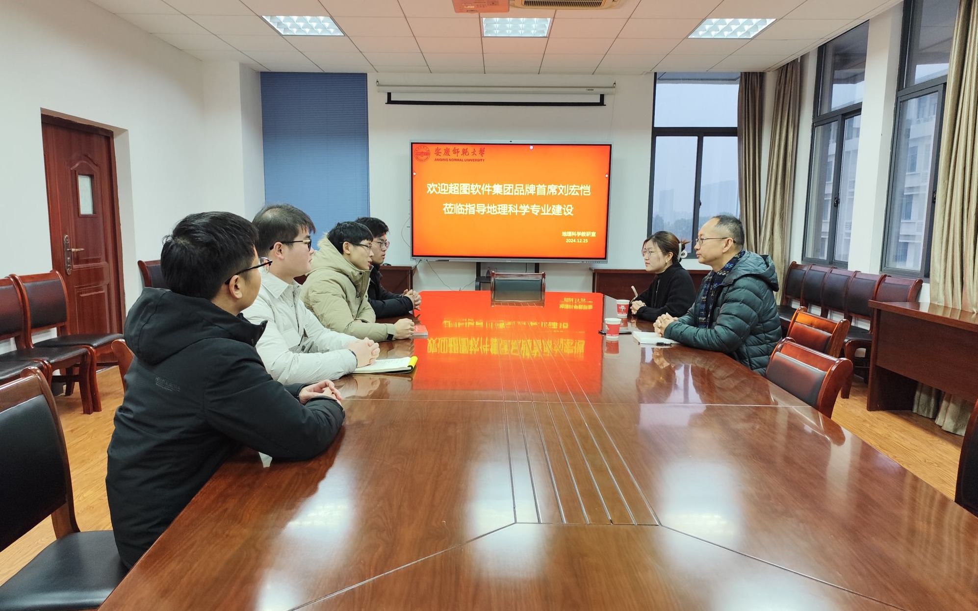 12月25日下午,超图软件品牌首席刘宏恺一行应太阳成集团tyc234cc地理科学专业邀请,到访公司开展合作交流。公司副书记黄建平、副经理朱磊、地理科学专业教研室主任顾洪亮等出席交流会。