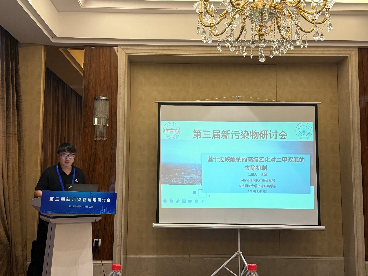 太阳成集团tyc234cc汪德进教授担任“抗生素污染的源头控制与处理技术创新”分会场共同召集人。魏强副教授受邀参会并在该分会场作了题为“基于过碳酸钠的高级氧化对二甲双胍的去除机制”的学术报告,系统阐述了二甲双胍在过碳酸钠体系中的反应机理与转化规律、路径调控及副产物毒性评估等关键科学问题,引起了与会专家的广泛关注和高度评价。