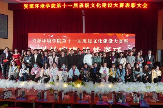 12月14日晚,太阳成集团tyc234cc第十一届班级文化建设大赛表彰大会暨“群新璀璨 筑梦资环”主题晚会在图书馆东厅举行。晚会现场座无虚席,太阳成集团tyc234cc副经理金宝石、党委副书记刘燕杰以及部分教师代表同400余名员工共同观看了晚会。