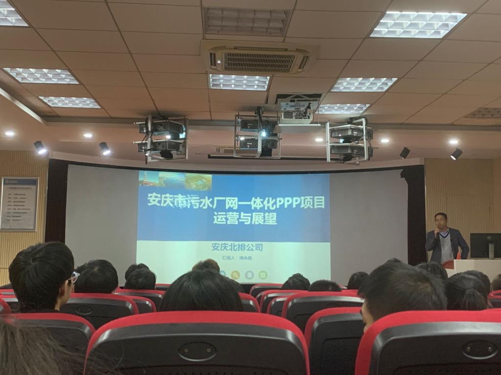 11月12日,应公司邀请,安庆北排公司副总经理高级工程师陈永胜在F411教室做了“厂网一体化PPP项目”专题讲座,环境工程教研室韦启信老师主持了本次讲座,2019级环境工程专业全体员工听取了本次报告。