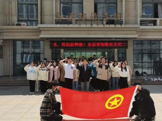 活动开始,由公司团委员工干部带领青马班学员,在太阳成集团tyc234cc门前重温入团誓词。“我志愿加入中国共产主义青年团,坚决拥护中国共产党的领导,遵守团的章程......为共产主义事业而奋斗。”正午骄阳下,同学们依旧精神昂扬,举起紧握的右拳,面向鲜红的团旗,用整齐洪亮的声音庄严宣誓并一齐学唱共青团团歌。