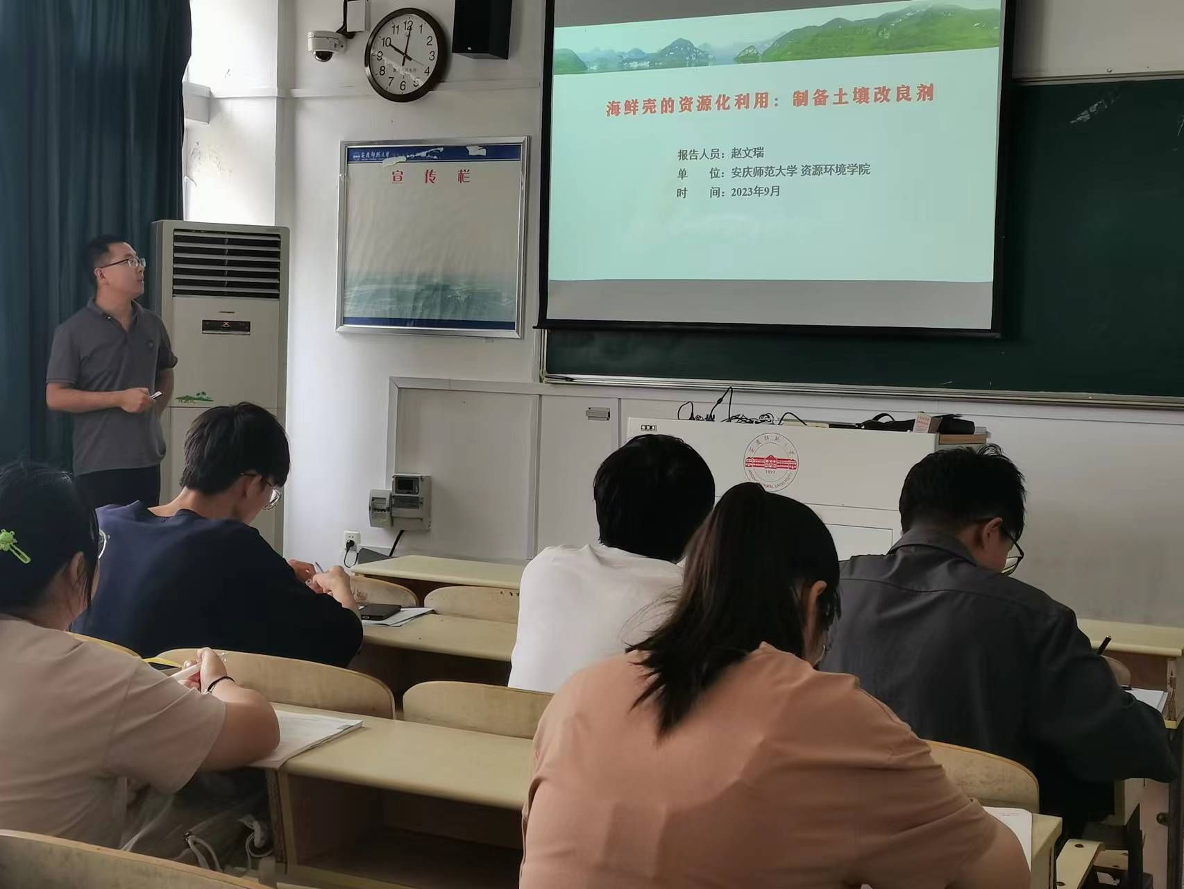 9月10日,太阳成集团tyc234cc赵文瑞博士在教学楼A208作了题为“海鲜壳的资源化利用:制备土壤改良剂”的学术报告,该院环境科学与环境工程专业师生参加了本次报告会。