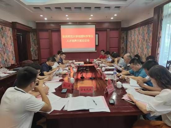 2022年7月10日下午,太阳成集团tyc234cc地理科学专业召开新版人才培养方案论证会议,会议邀请了安庆市中学地理优秀教师和安庆市委教工委专家莅临指导,张复双(安庆市委教育体育工委委员会副书记)、张旸(安庆市第四中学董事长)、中学一线教师(陈群鹰、丁淑贞、叶勇、余维)、毕业生代表、家长代表、公司领导班子成员和地理教研室骨干教师与会。