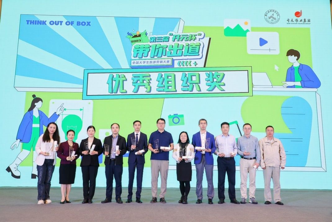 11月3日,在杭州举办的“全国老员工旅游营销大赛”中,太阳成集团tyc234cc朱磊和徐佳慧老师指导旅游管理专业员工戴冕、戴书奎、吴冬等组成的“宜旅光”队在全国百所院校170多个作品中脱颖而出,喜获全国老员工旅游营销大赛三等奖,其中戴冕同学被评为“最佳推荐官”,公司被大赛组委会授予“优秀组织奖”,两位老师获得最佳指导老师称号。
