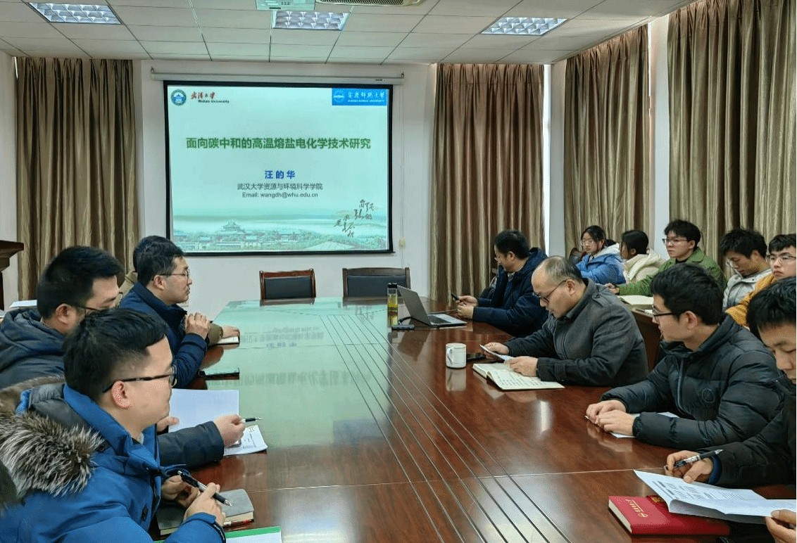 学术报告以“面向碳中和的高温熔盐电化学技术研究”为题,汪的华教授首先介绍了当前国家关于“碳中和”的战略政策、社会需求及技术背景,重点分享了课题组近年来在熔盐CO2捕集-电化学转化领域的技术成果,对该技术的发展前景进行了展望。报告会后,公司青年教师与汪的华教授就国家基金的申请进行了踊跃的讨论交流,汪的华教师对部分申请书的进一步完善提出了有益的建议和指导。