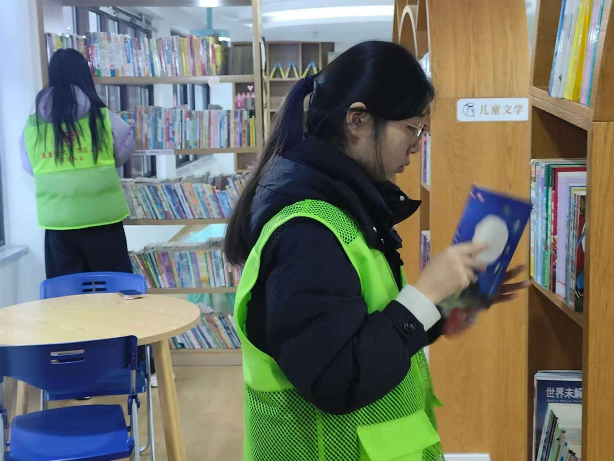 2024级环境工程专业(1)班吴梦茹在合肥市萤火书屋开展志愿活动,细致整理书籍、规范图书陈列、维护阅读秩序,为市民营造干净有序、书香浓郁的阅读环境。她认为,整理书籍看似平凡琐碎,却彰显着志愿服务的细致与温暖,能够为书香文化传播贡献力量,看着整齐有序的书架,心中充满成就感,也更加坚定以志愿行动传递美好的信念。