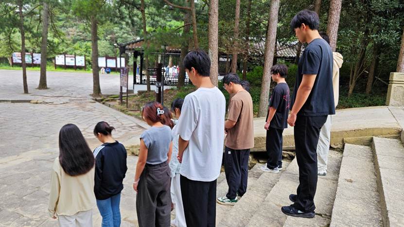 上午9时18分,天柱山庄上空防空警报准时响起,正在开展生态实习任务的全体同学立即停下手中工作,自觉面向警报声方向肃立,神情凝重地低头默哀。肃穆的氛围中,大家深切缅怀在抗日战争中英勇牺牲的先烈,深刻感悟如今和平生活的来之不易,爱国主义的种子在无声的追思中愈发坚定。