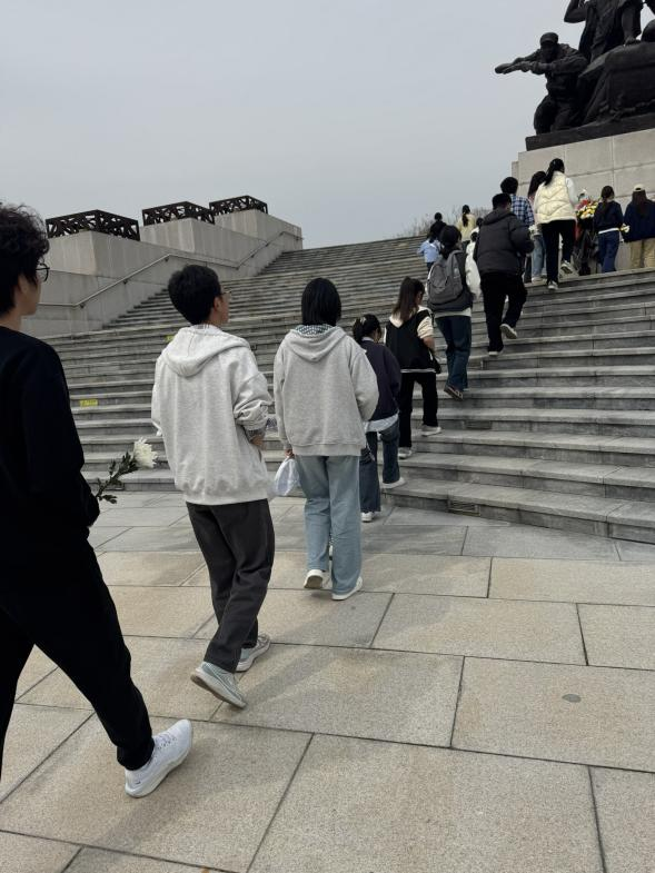 烈士陵园庄严肃穆,苍松翠柏挺拔,革命烈士纪念碑巍然矗立,镌刻其上的文字彰显着先烈们的忠勇赤诚。同学们手持白菊,怀着崇敬之心缓步步入园区,在纪念碑前整齐列队,神情肃穆,深切缅怀革命先烈。默哀毕,全体员工向纪念碑三鞠躬,鞠躬礼毕,依次缓步走向纪念碑,轻轻放下手中的白菊,驻足凝视、深情追思,用最质朴的方式表达对先烈的悼念之情。